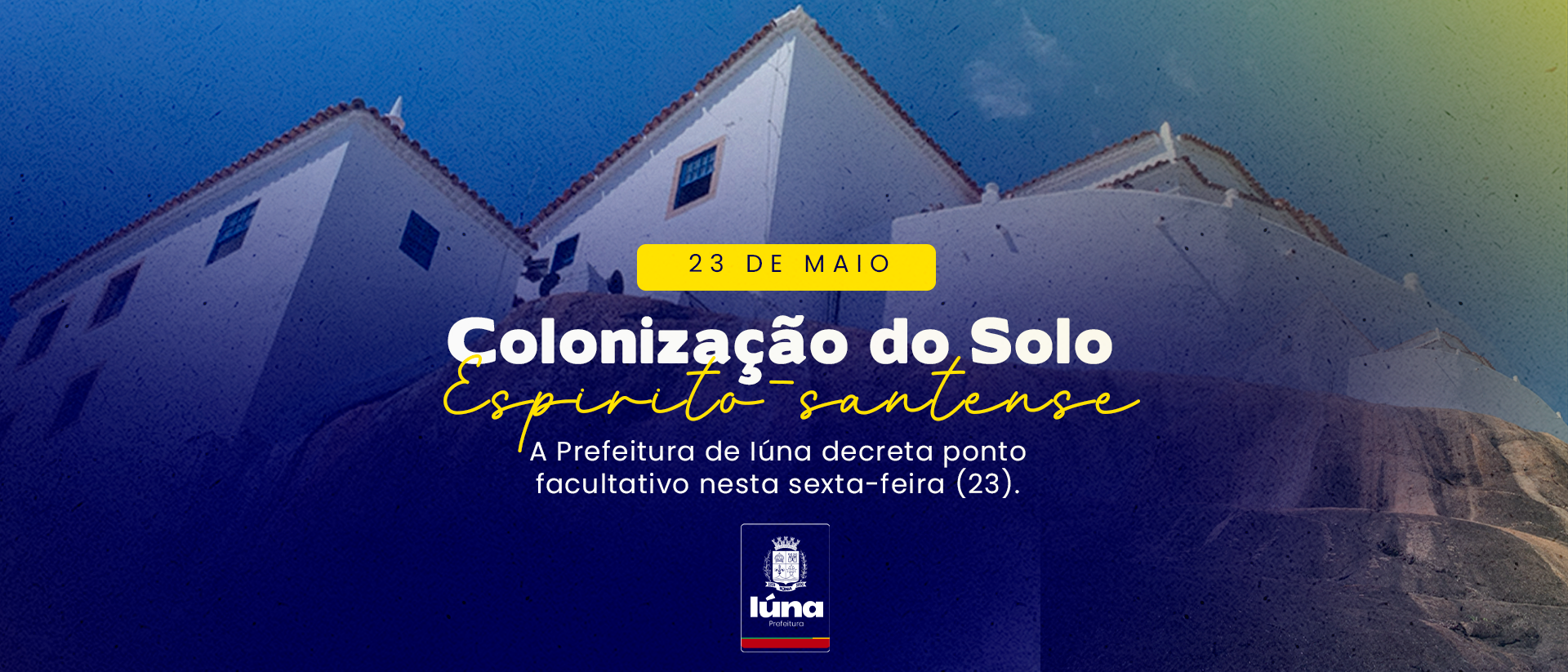 A Prefeitura de Iúna instituiu ponto facultativo para os servidores municipais nesta sexta-feira (23) em virtude do dia da Colonização do Solo Espírito-santense. Portanto, não haverá expediente nas repartições públicas.