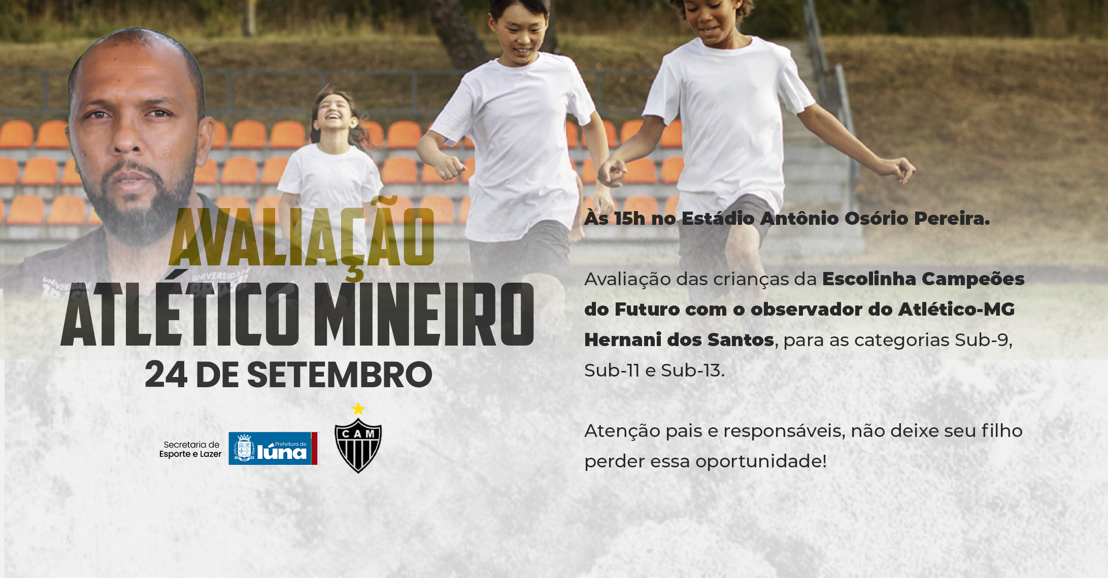 Nessa quarta-feira (24), o observador do Atlético Mineiro, Hernani Nogueira dos Santos vai estar em Iúna para fazer uma avaliação das crianças que participam da Escolinha Campeões do Futuro.