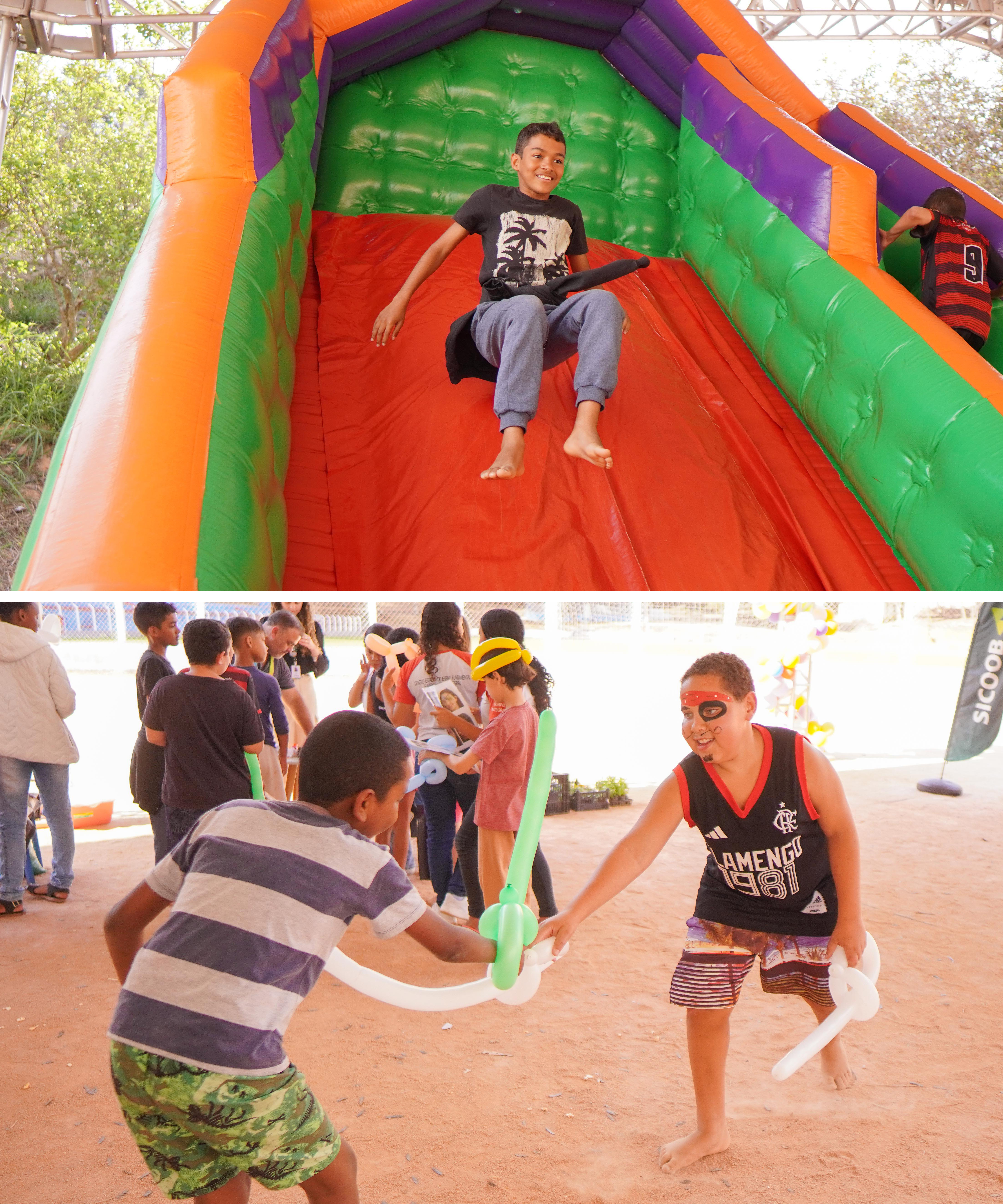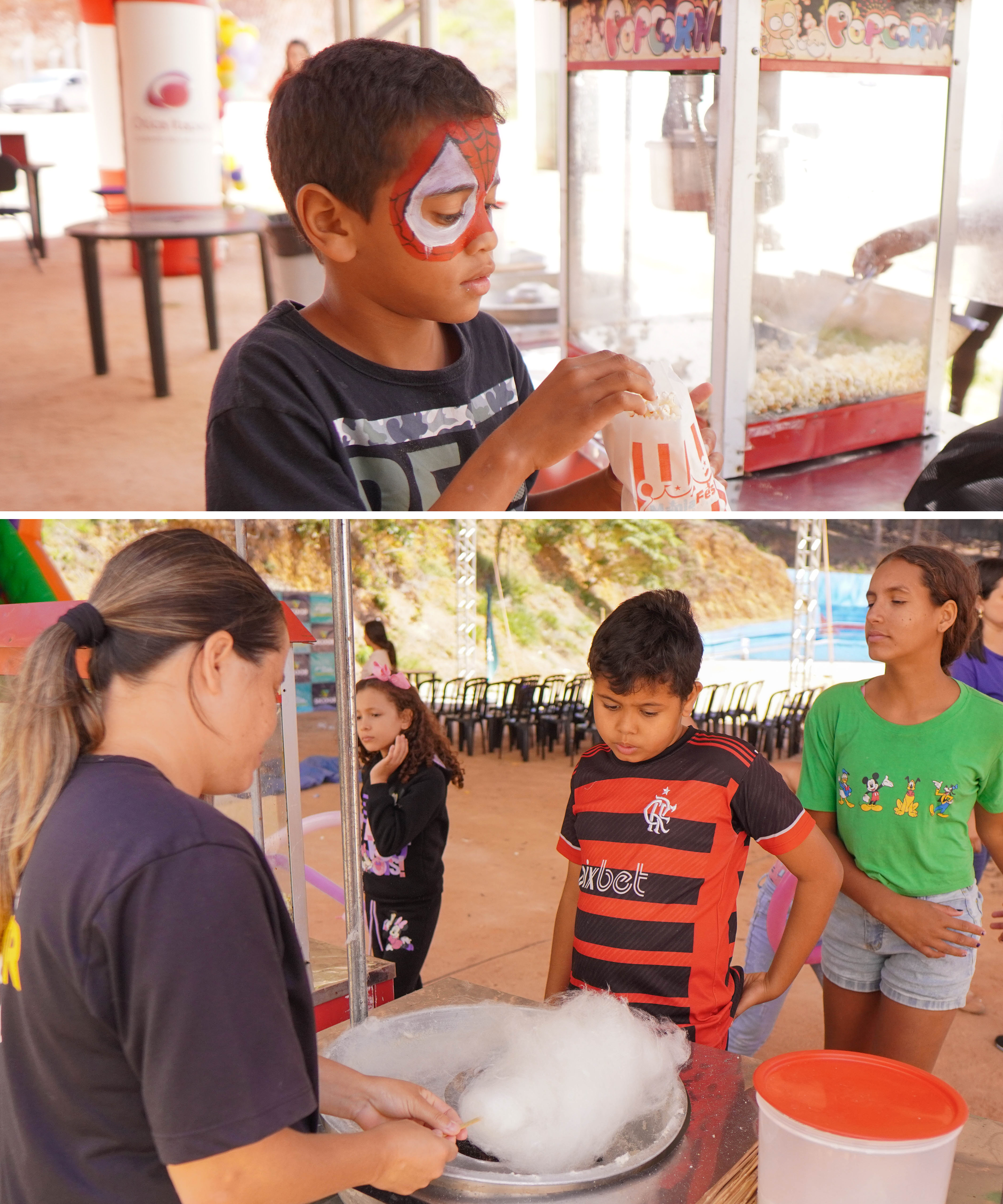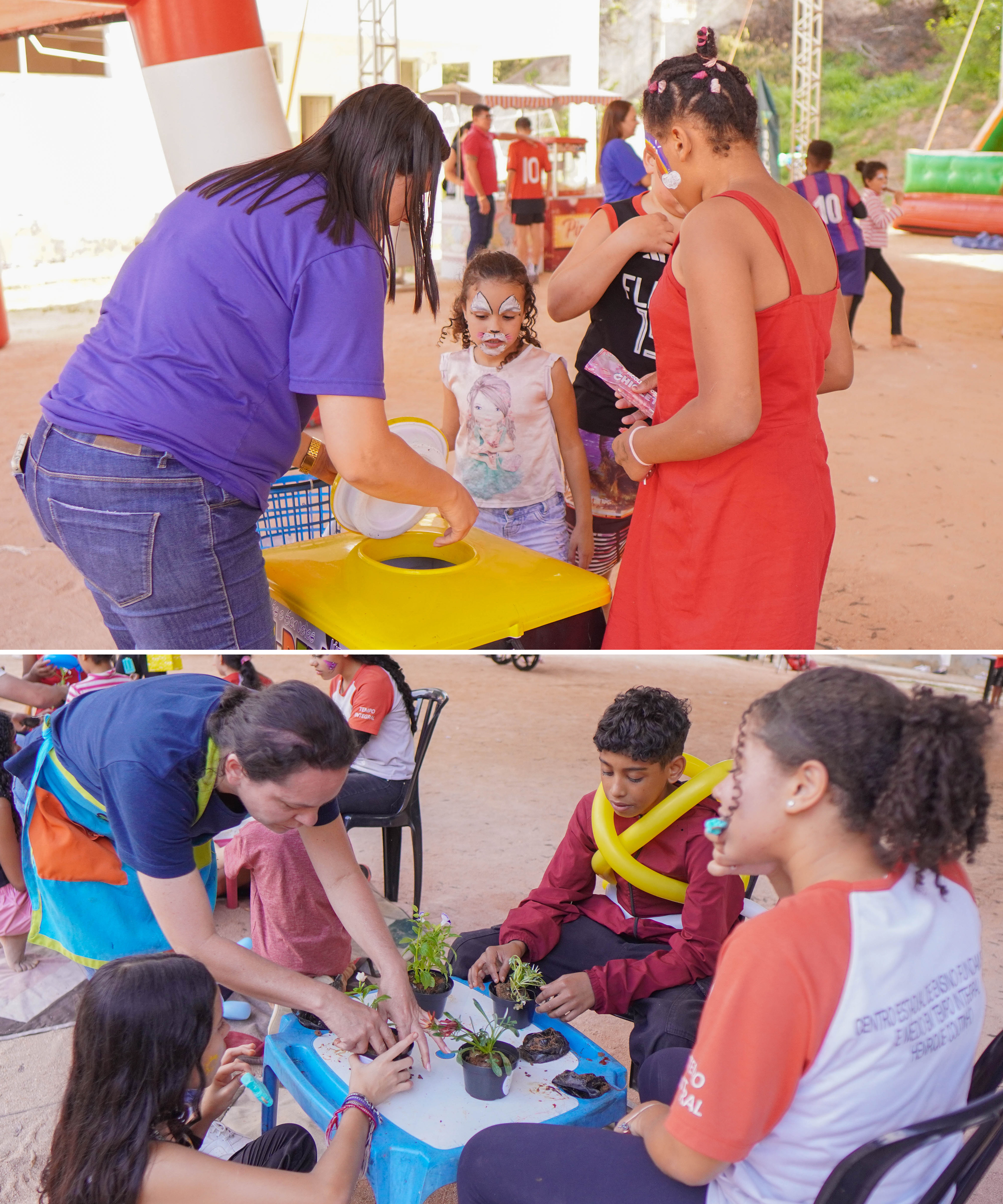 A programação contou com entrega de óculos de grau para os alunos que haviam realizado exames previamente, manejo de plantio de flores, pintura facial, escultura com balões, escorregador inflável, pipoca, algodão doce, salgadinhos e picolé.
