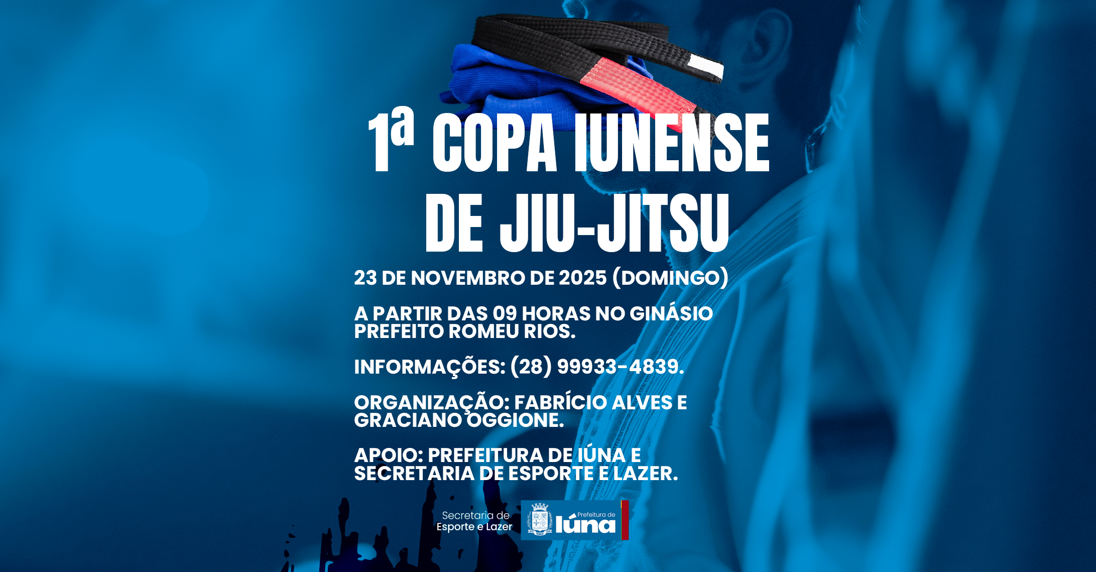 A 1ª Copa Iúna de Jiu-Jitsu é uma organização de Fabrício Alves e Graciano Oggione com apoio da Prefeitura de Iúna e a Secretaria de Esporte e Lazer.