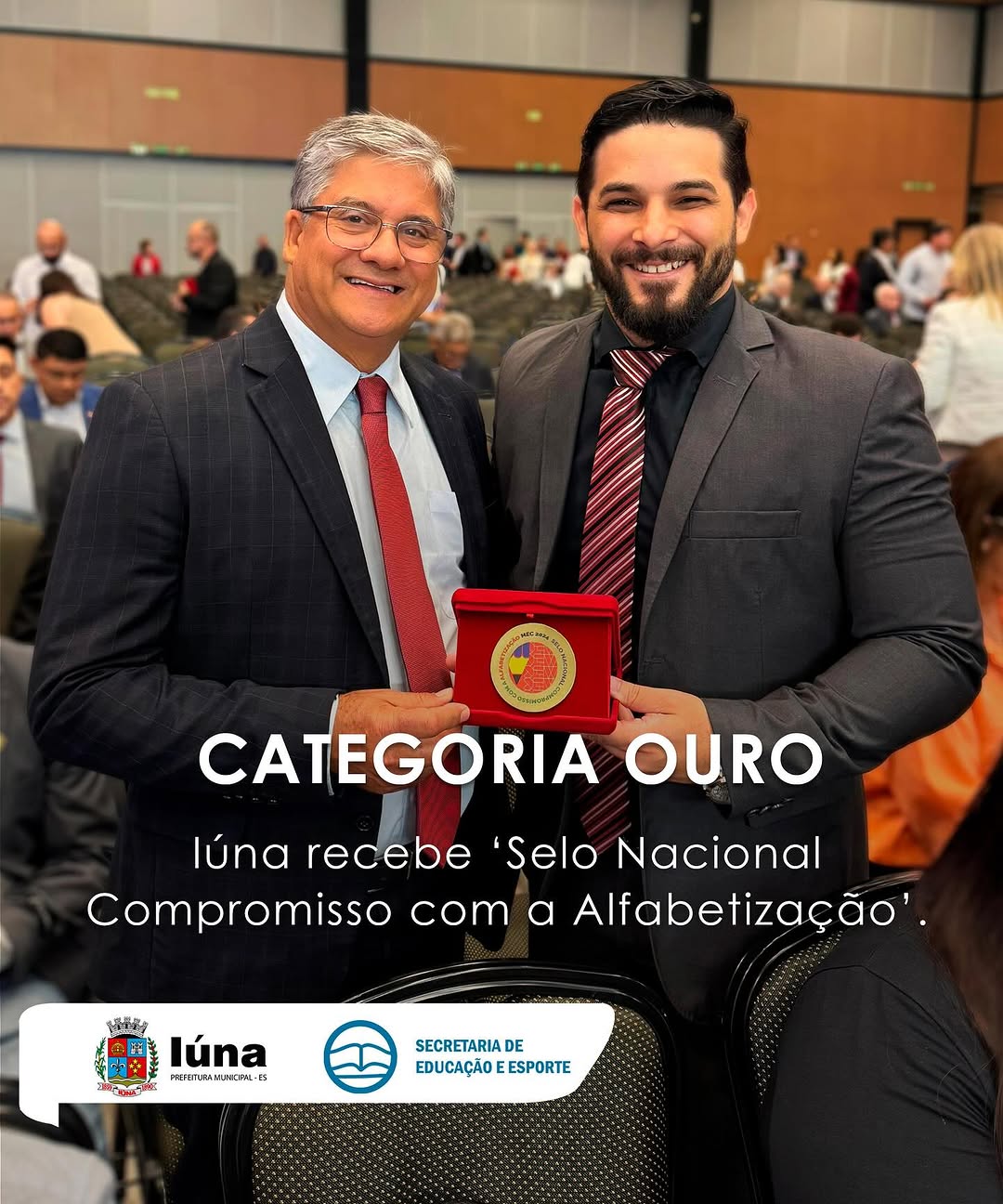 Nessa segunda-feira (10), aconteceu em Brasília a cerimônia de entrega do ‘Selo Nacional Compromisso com a Alfabetização’, onde 4.187 municípios foram contemplados. Entre os premiados, 2.592 receberam o prêmio na categoria Ouro, 1.062 na categoria Prata e 533 na Bronze. Iúna recebeu o selo Ouro.