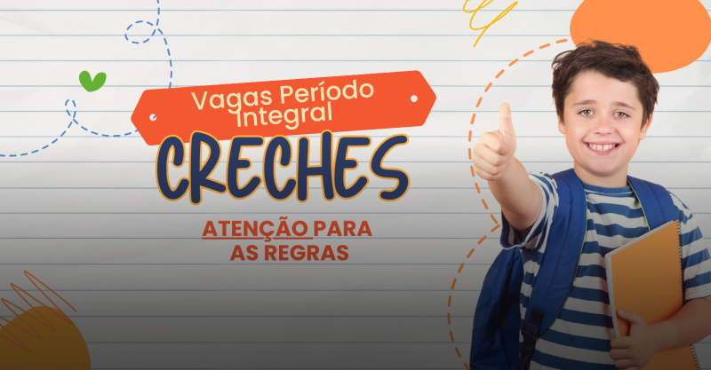 A Secretaria Municipal de Educação informa que o período de análise de documentações para as vagas em período integral nas creches estará aberto de 1º a 5 de dezembro. Durante esse período, pais ou responsáveis deverão comparecer à Secretaria para a entrega da documentação comprobatória e o preenchimento do requerimento, que será feito no momento do protocolo. Esta etapa é para os pais, que no momento da pré-matrícula, indicaram interesse na vaga de tempo integral.