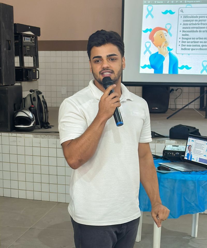 A palestra foi conduzida pelo enfermeiro Mateus Ramos, que explicou que o câncer de próstata acontece quando células da próstata (uma glândula que só os homens têm) começam a crescer descontroladamente.