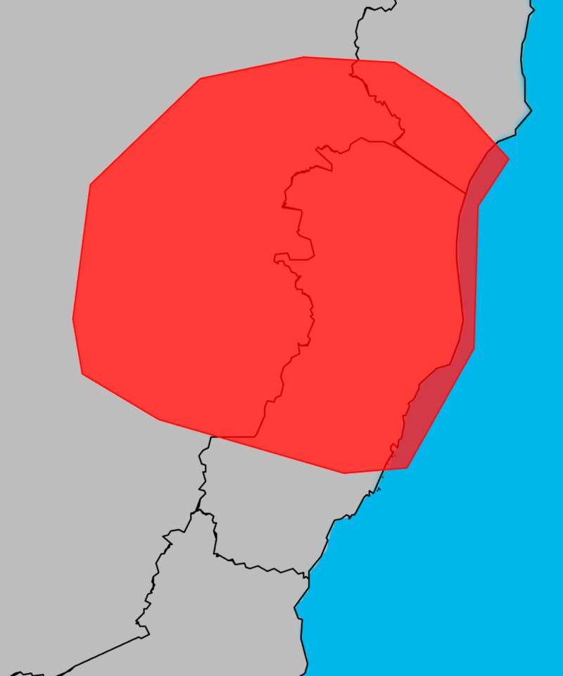 De acordo com o INMET, pode ocorrer ventos fortes, corte de energia, queda de barreiras e árvores, descargas elétricas e alagamentos.