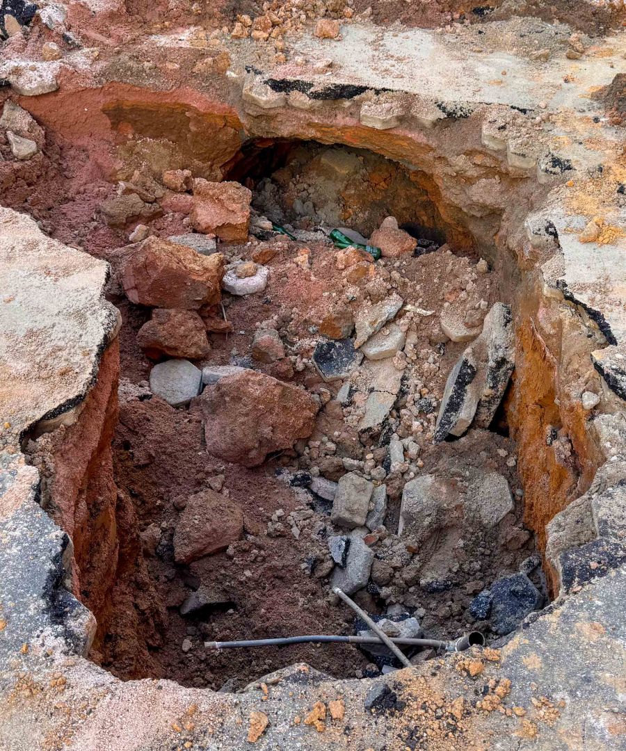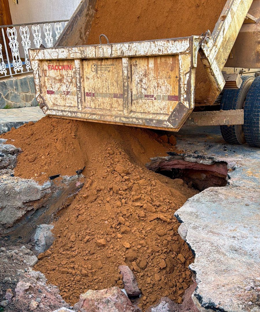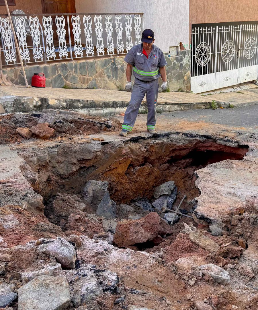 Os técnicos trabalharam na contenção do vazamento e, logo em seguida, a prefeitura deu início ao processo de aterro e compactação do solo.