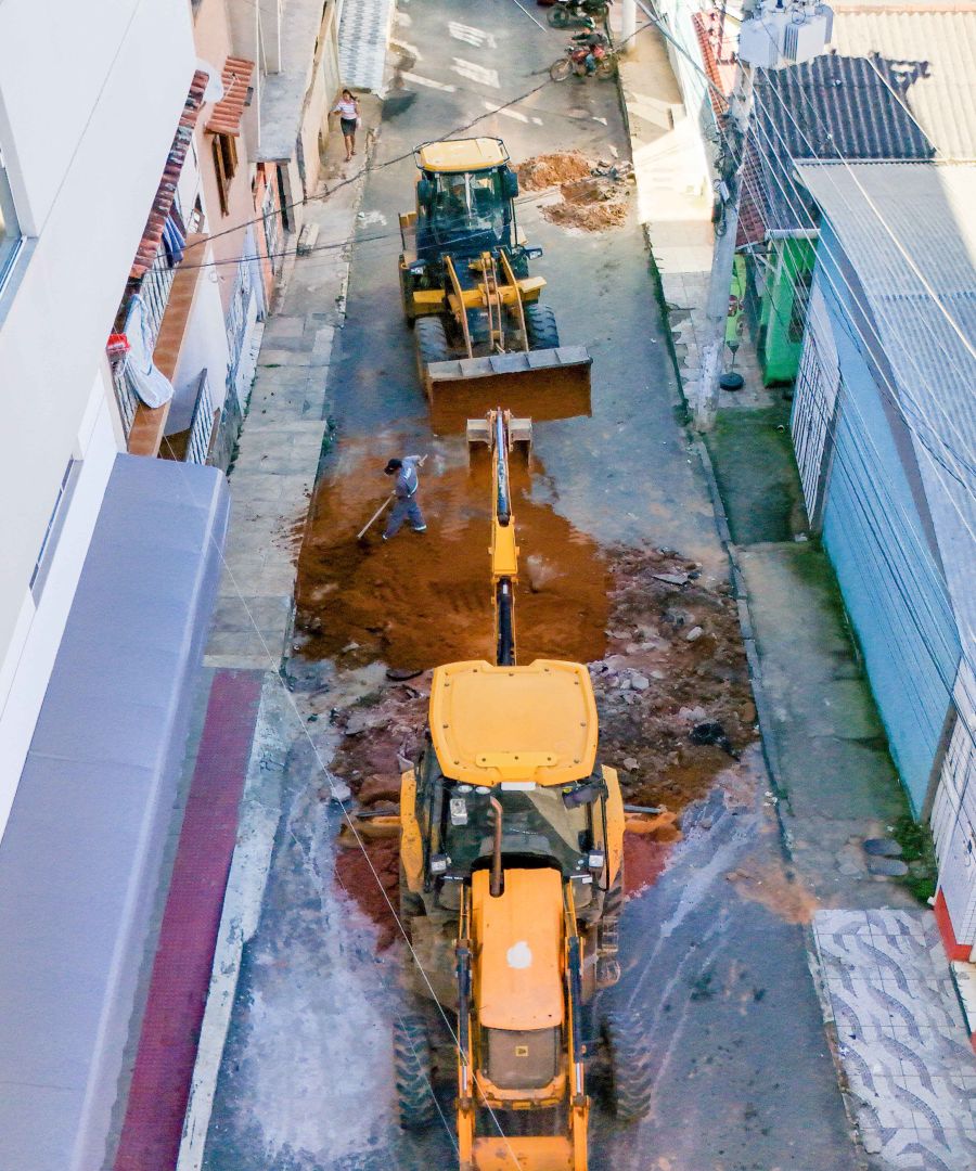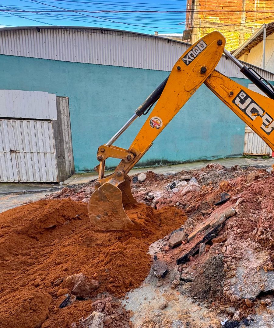 O incidente, que comprometia a segurança de motoristas e pedestres, exigiu uma resposta rápida da administração municipal. Para agilizar a liberação do tráfego, a operação contou com o apoio de maquinário pesado, incluindo uma retroescavadeira e uma pá-carregadeira.