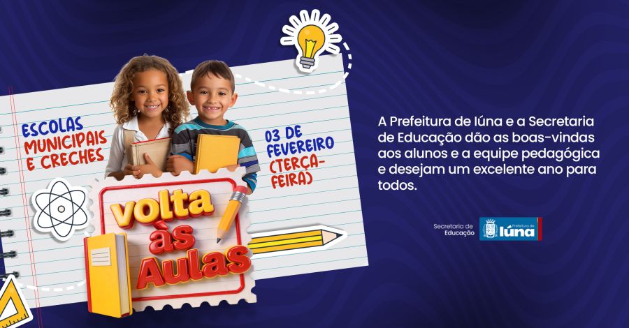 No próximo dia 03 de fevereiro, terça-feira, terão início as aulas nas escolas e creches municipais de Iúna. A Prefeitura e a Secretaria de Educação desejam um excelente ano para os alunos e a equipe pedagógica.