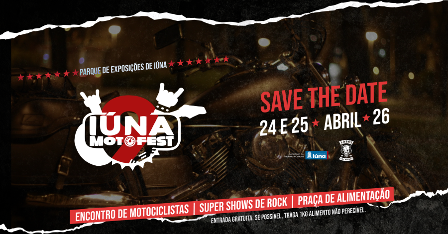 A Prefeitura de Iúna, a Secretaria de Turismo e Cultura e o Moto Clube Lobos do Caparaó, anunciam que o 9º Iúna Motofest está confirmado para os dias 24 e 25 de abril de 2026.