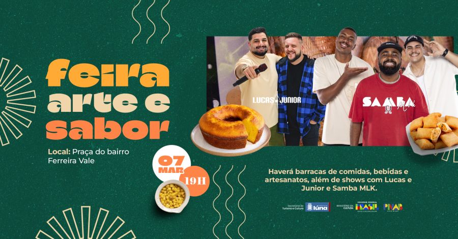 No dia 07 de março, a partir das 19 horas na praça do bairro Ferreira Vale, terá a abertura do ciclo anual da Feira Arte e Sabor, evento que já se consolidou como um ponto de encontro tradicional para famílias e turistas da região.