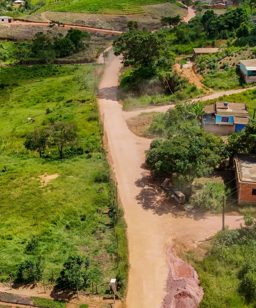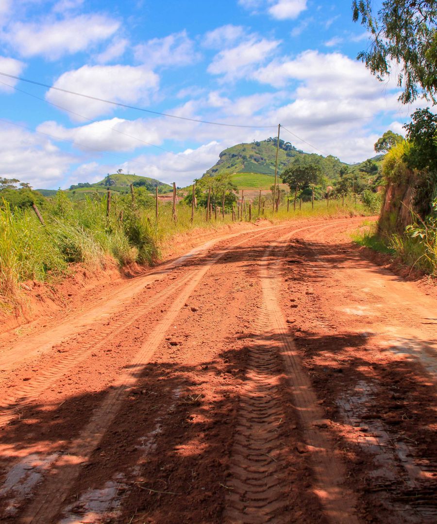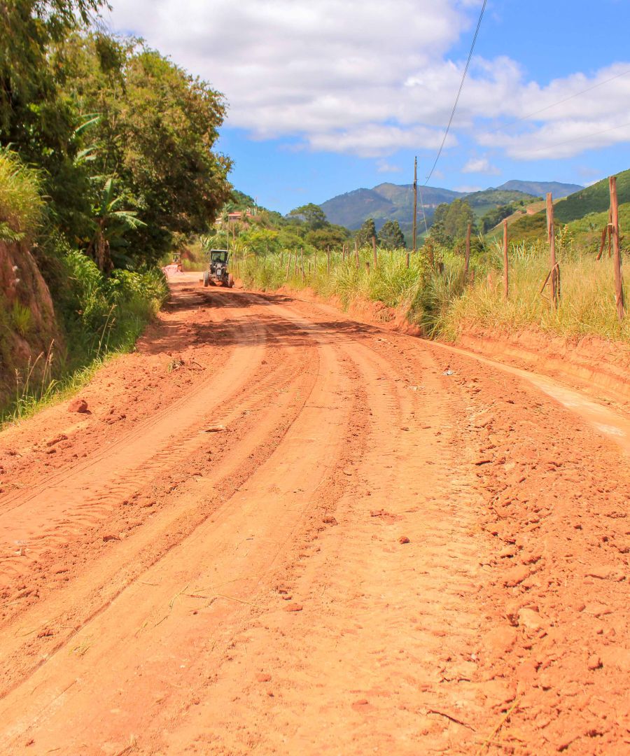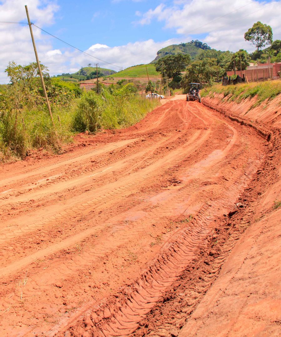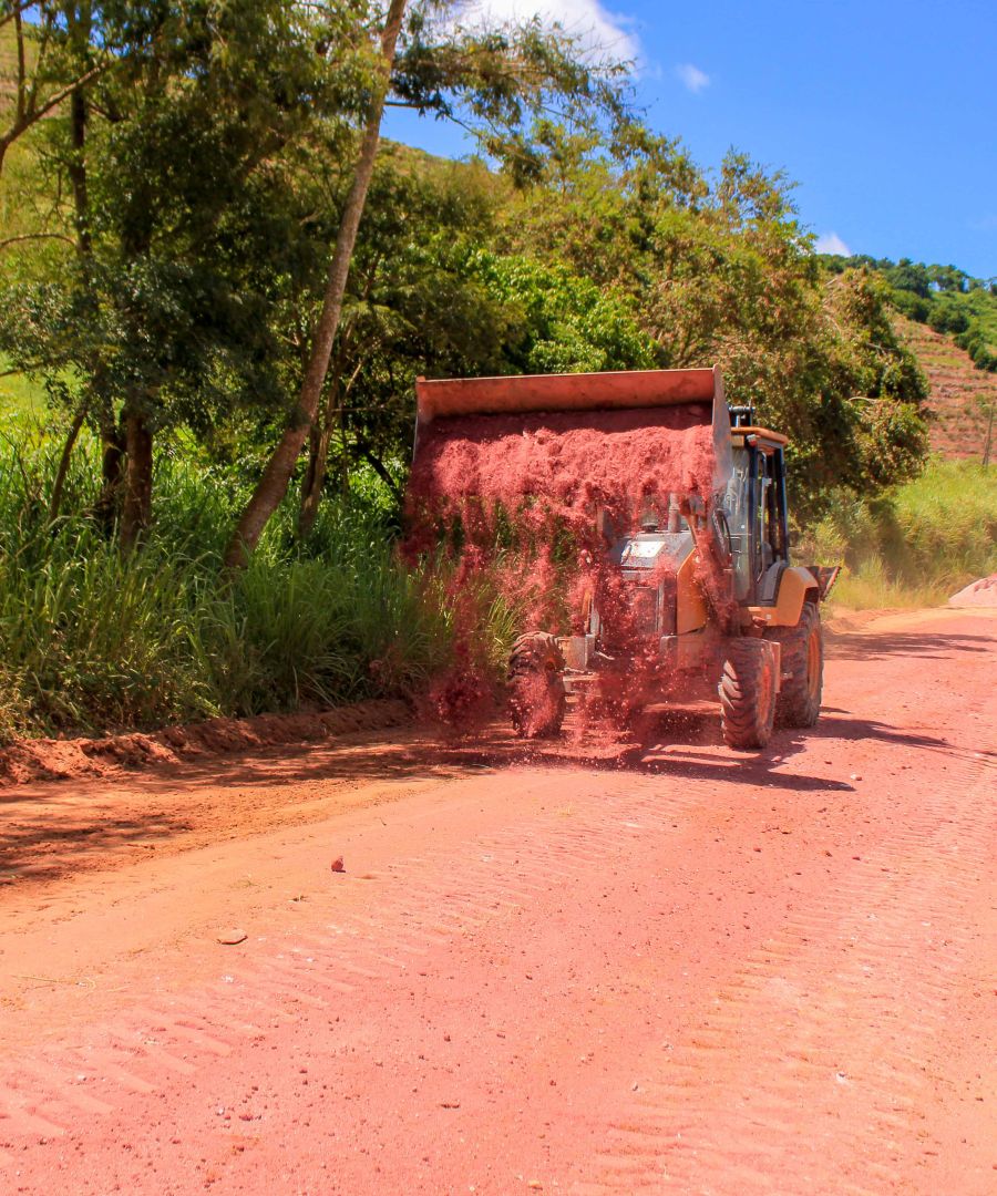 O trabalho consiste em nivelamento da pista para correção de irregularidades e valas, aplicação de saibro para dar sustentação ao solo e utilização do rolo compactador para selar a via, evitando que o material se solte e garantindo uma superfície lisa e resistente.