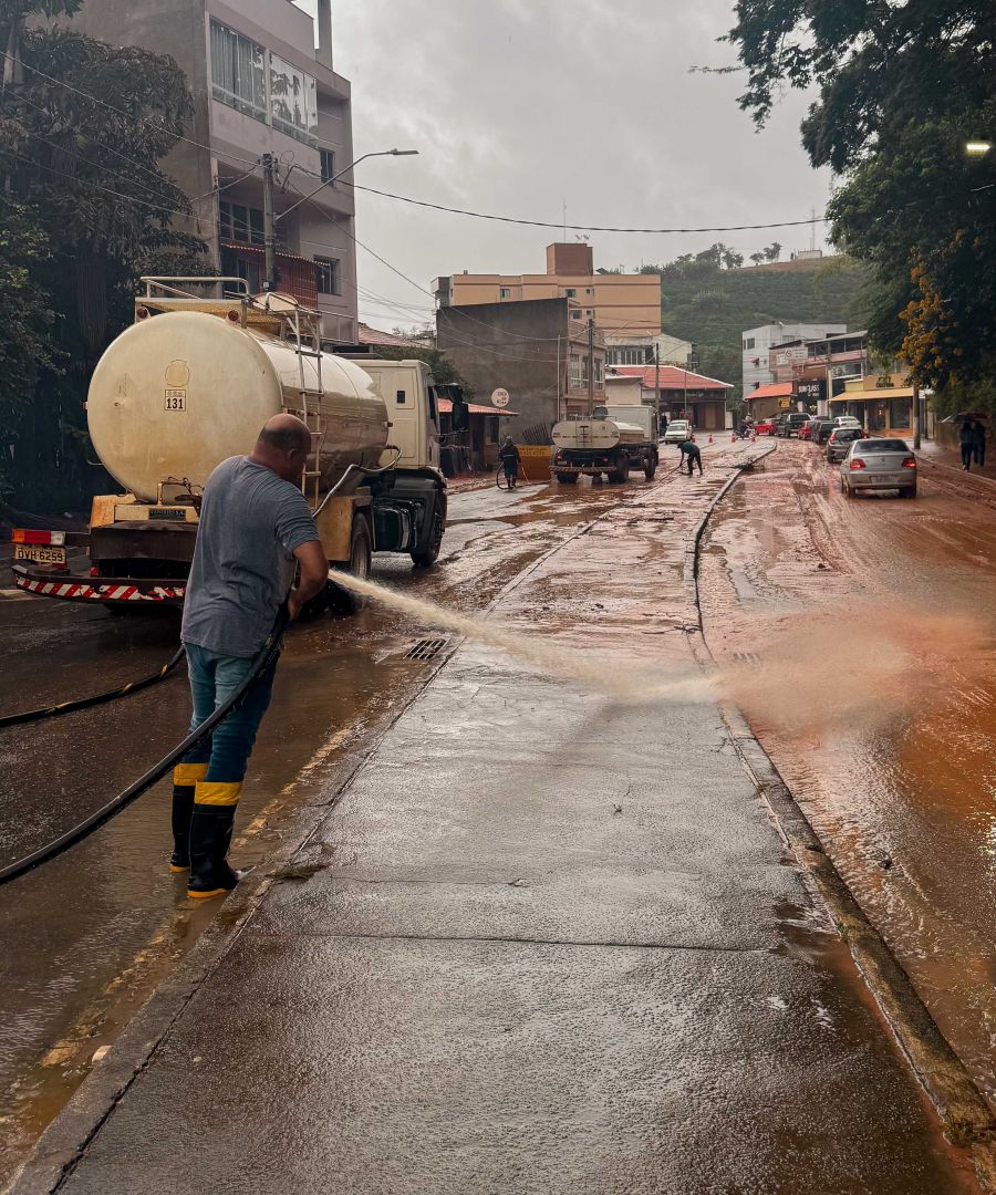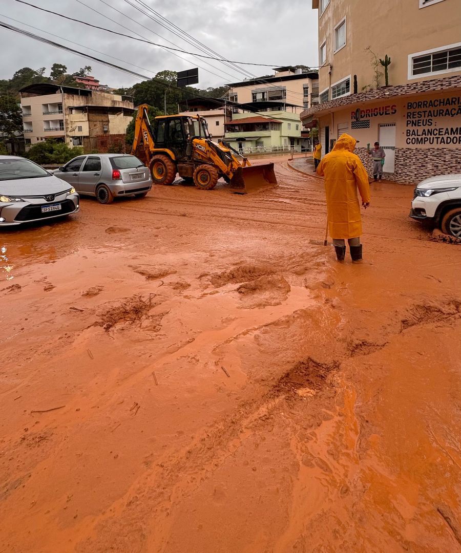 O INMET mantém avisos de Chuvas Intensas (Perigo) para a região, válidos até o dia 27 de fevereiro, com riscos de alagamentos e deslizamentos, especialmente em áreas próximas à Serra do Caparaó. A previsão para hoje (26/02) ainda indica tempo instável com pancadas de chuva.