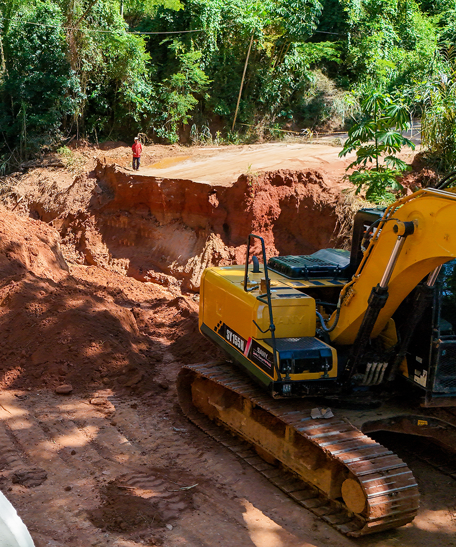A obra de reparo consiste na abertura e restauração do bueiro, instalação de novas manilhas com maior vasão de água e aterramento na estrada onde formou-se a cratera.