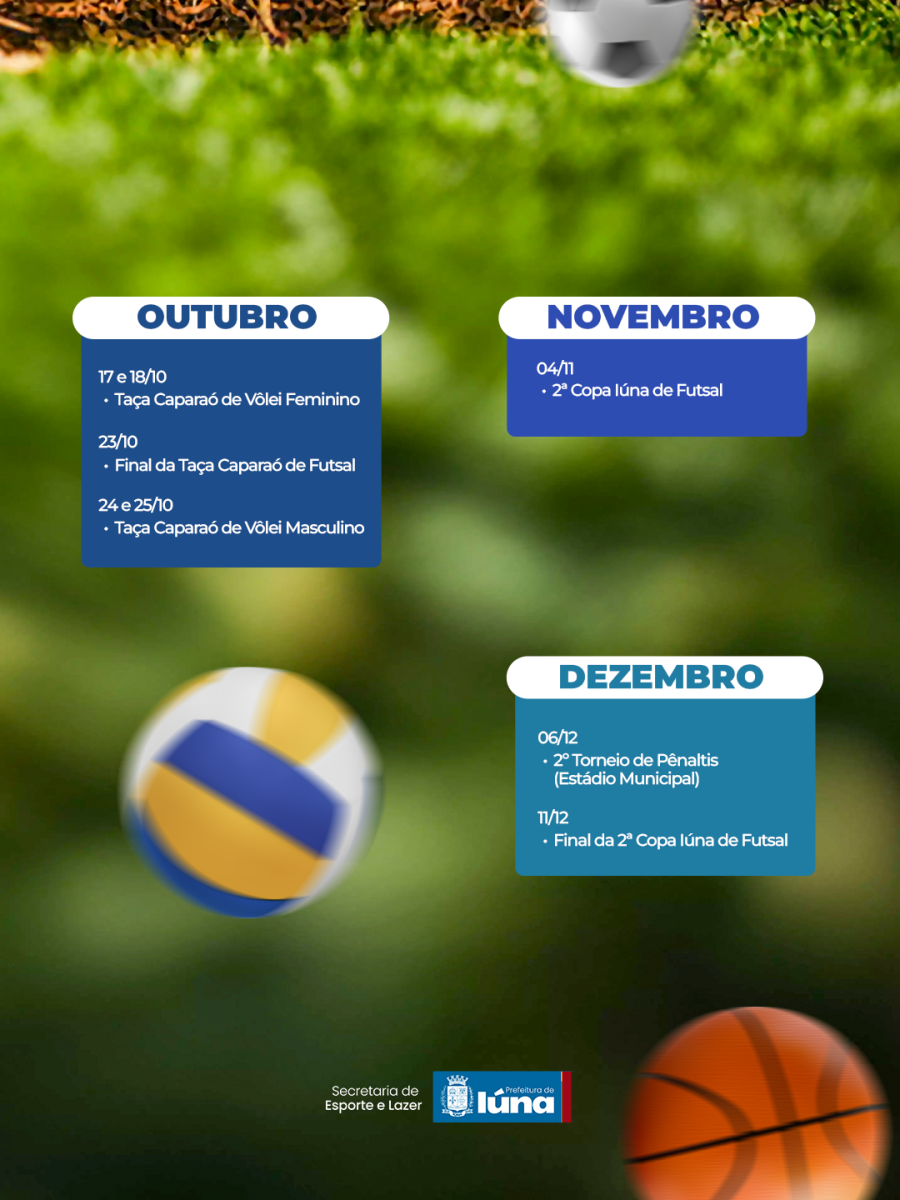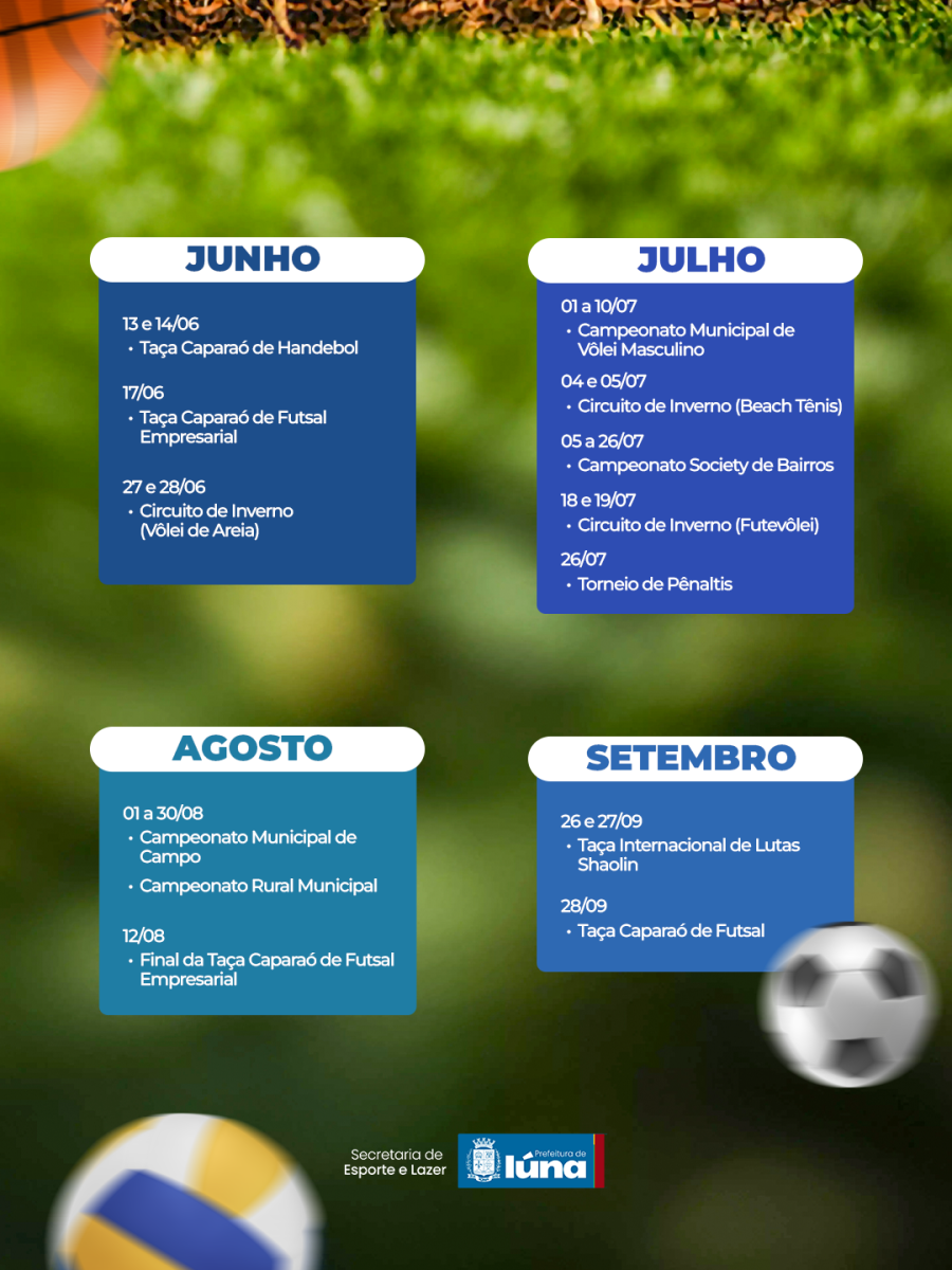 A Secretaria de Esporte e Lazer acaba de divulgar o calendário oficial de eventos, repleto de competições, lazer e integração para todas as idades.