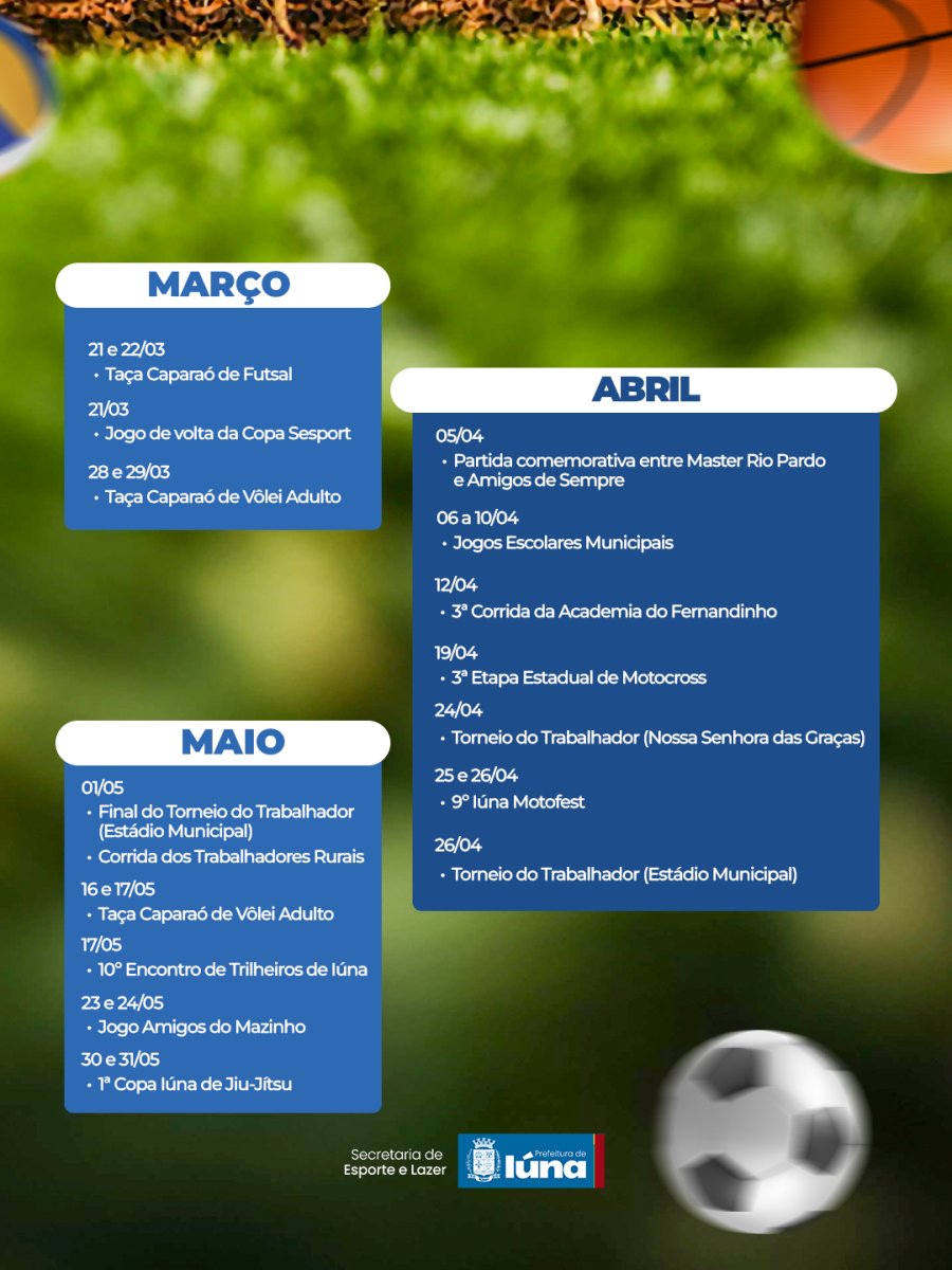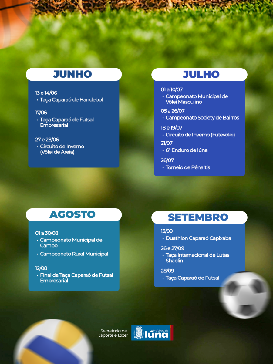 A Secretaria de Esporte e Lazer acaba de divulgar o calendário oficial de eventos, repleto de competições, lazer e integração para todas as idades.