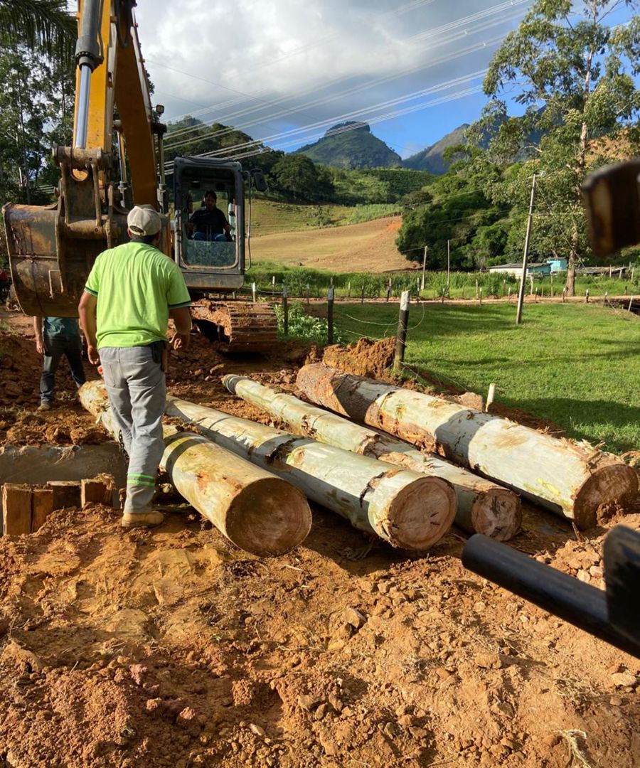 Com auxílio de retroescavadeira, a estrutura antiga foi retirada e deu lugar a novos troncos de sustentação, pranchas de madeira e ajuste na cabeceira.