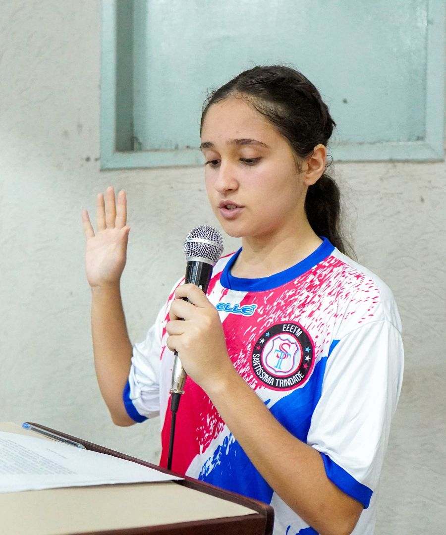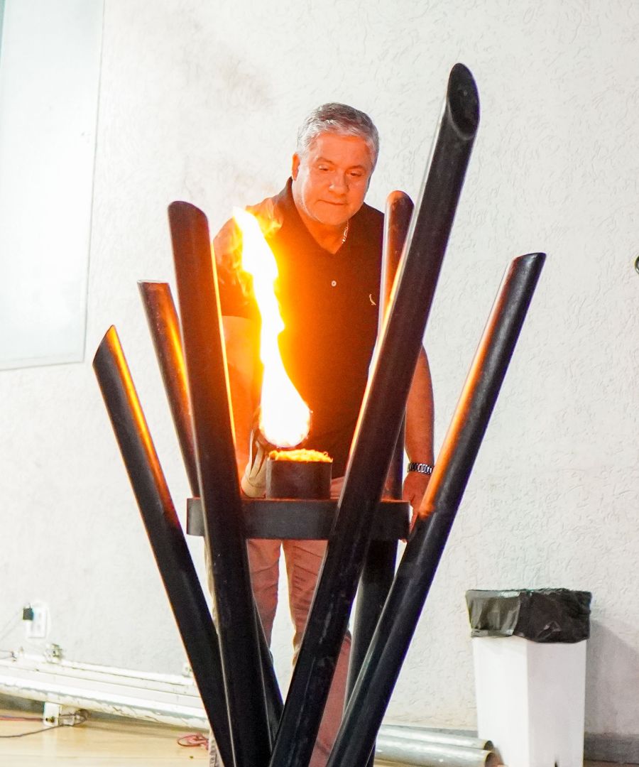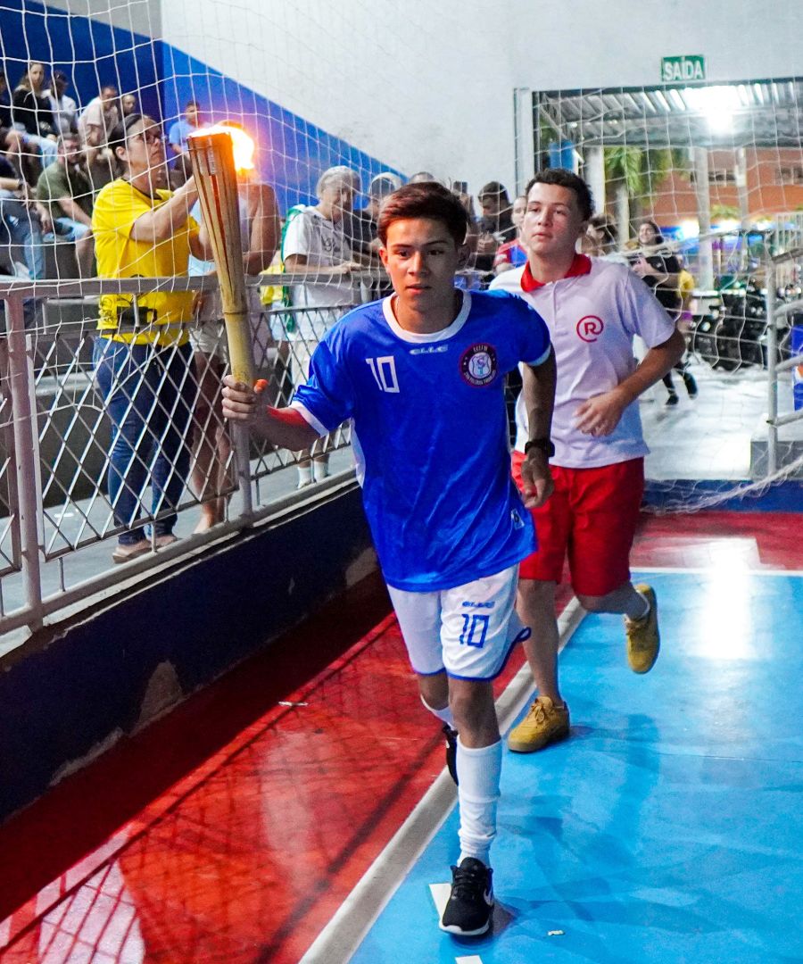 Quatro alunos entraram no ginásio fazendo o revezamento da Tocha Olímpica, que foi entregue para o prefeito Romário Batista Vieira acender a Pira Olímpica. Em seguida, a aluna Mirella Vieira Figueira, da Escola Santíssima Trindade, realizou o juramento.