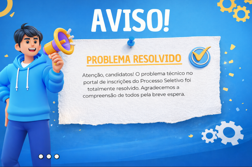 A Prefeitura Municipal de Iúna informa que o sistema de inscrições para o Processo Seletivo já se encontra totalmente operacional. A Nossa equipe técnica finalizou os ajustes necessário garantindo a estabilidade da plataforma.