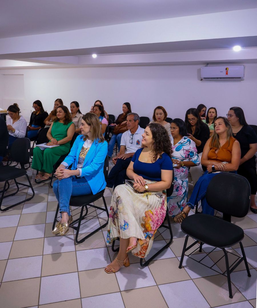 Nessa quarta-feira (22) gestores da Rede Municipal participaram de uma formação sobre acolhimento e cuidados com crianças com Transtorno do Espectro Autista (TEA), em alusão a campanha Abril Azul, ministrada por Acza Maressa e Géssica Medeiros.